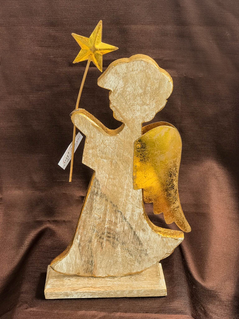 WOODEN ANGEL, STANDING WITH STAR