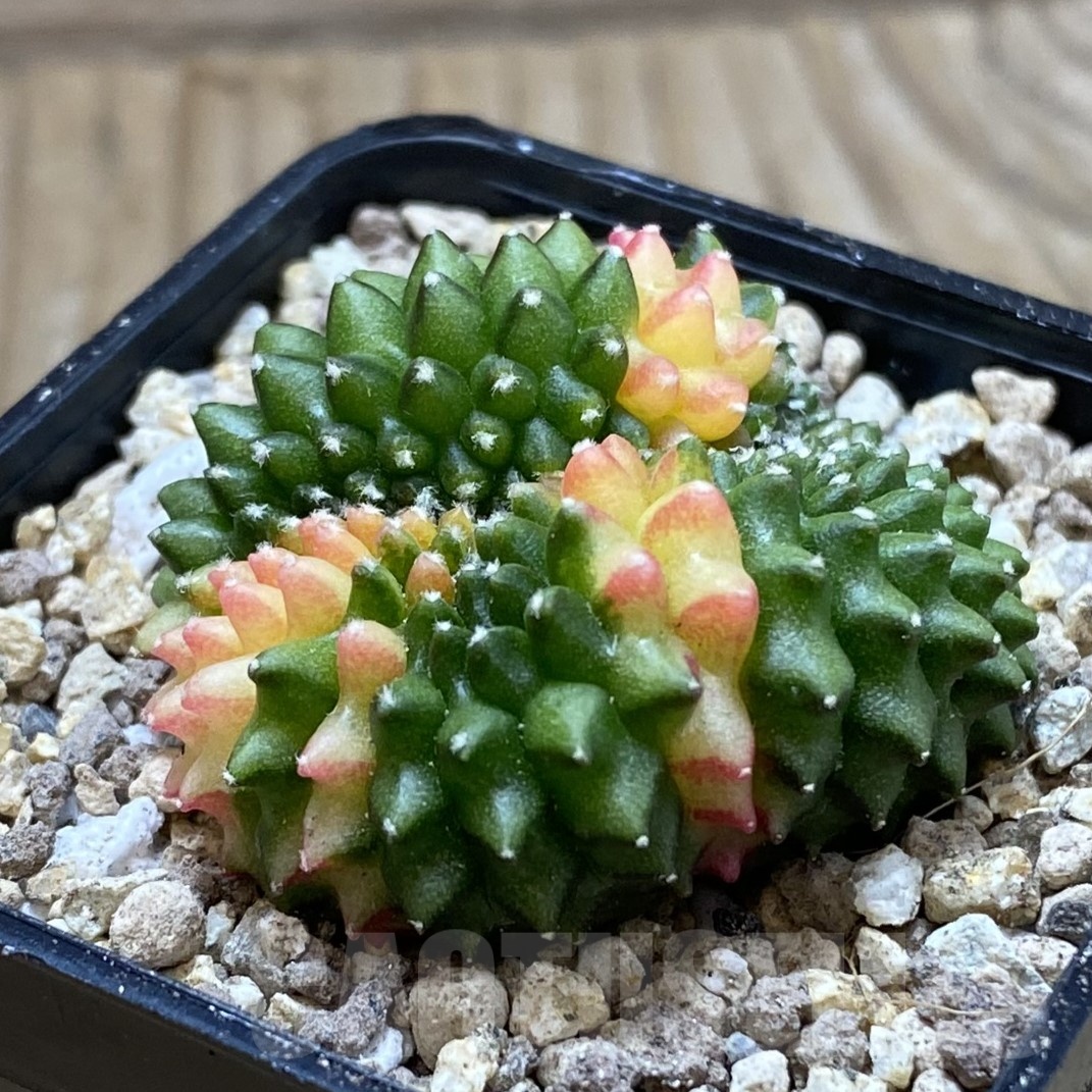 • SH19539 Gymnocalycium mihanovichii ‘inermis’ f. cristata variegata