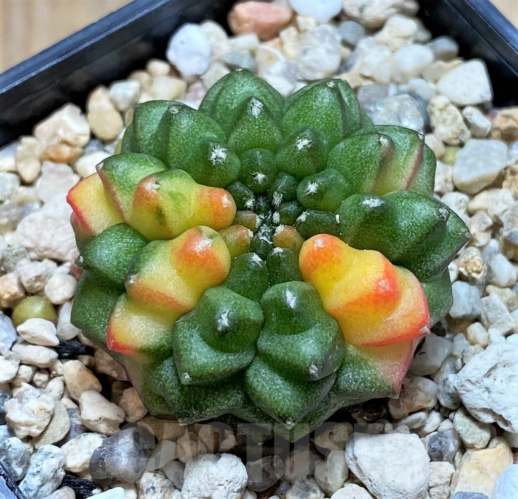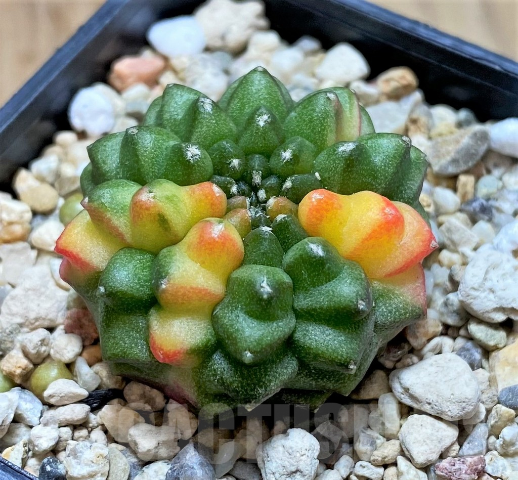 February 4, 2025SHPR39491 Gymnocalycium mihanovichii ‘inermis’ f. variegata seedling